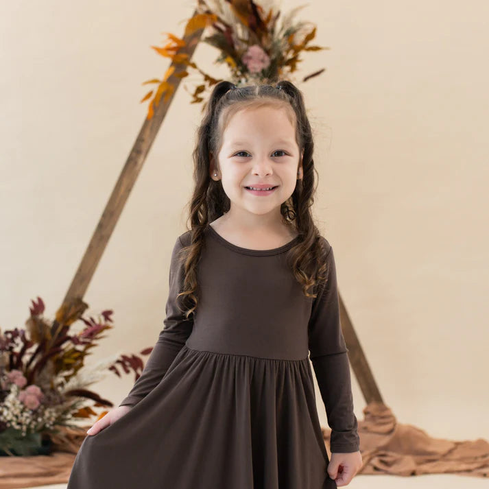KYTE BABY L/S TWIRL DRESS - ESPRESSO