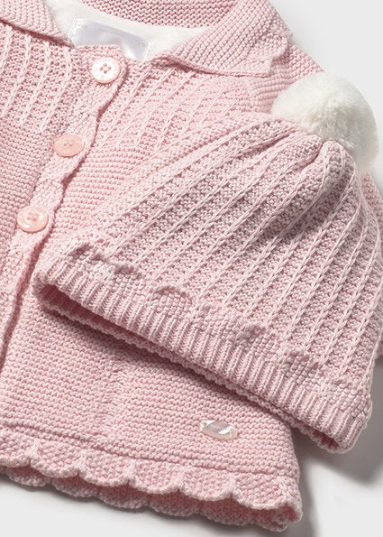 MAYORAL KNIT SWEATER COAT/HAT - PINK - 6-9M is backordered and will ship as soon as it is back in stock.