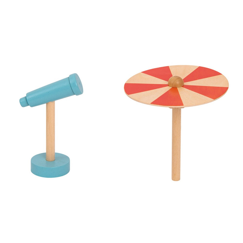 A tree house is the perfect place to play! It can be accessed via the rope ladder or across a bridge suspended from a neighbouring tree. It is made entirely of wood and can be dismantled. It even has a set of garden furniture for relaxing in the shade! APPROX dimensions: Length 51.5 cm x Width 32 cm x Height 38.5 cm. NOTE: CHARACTERS SOLD SEPARATELY. SAFETY RATED for ages 3+