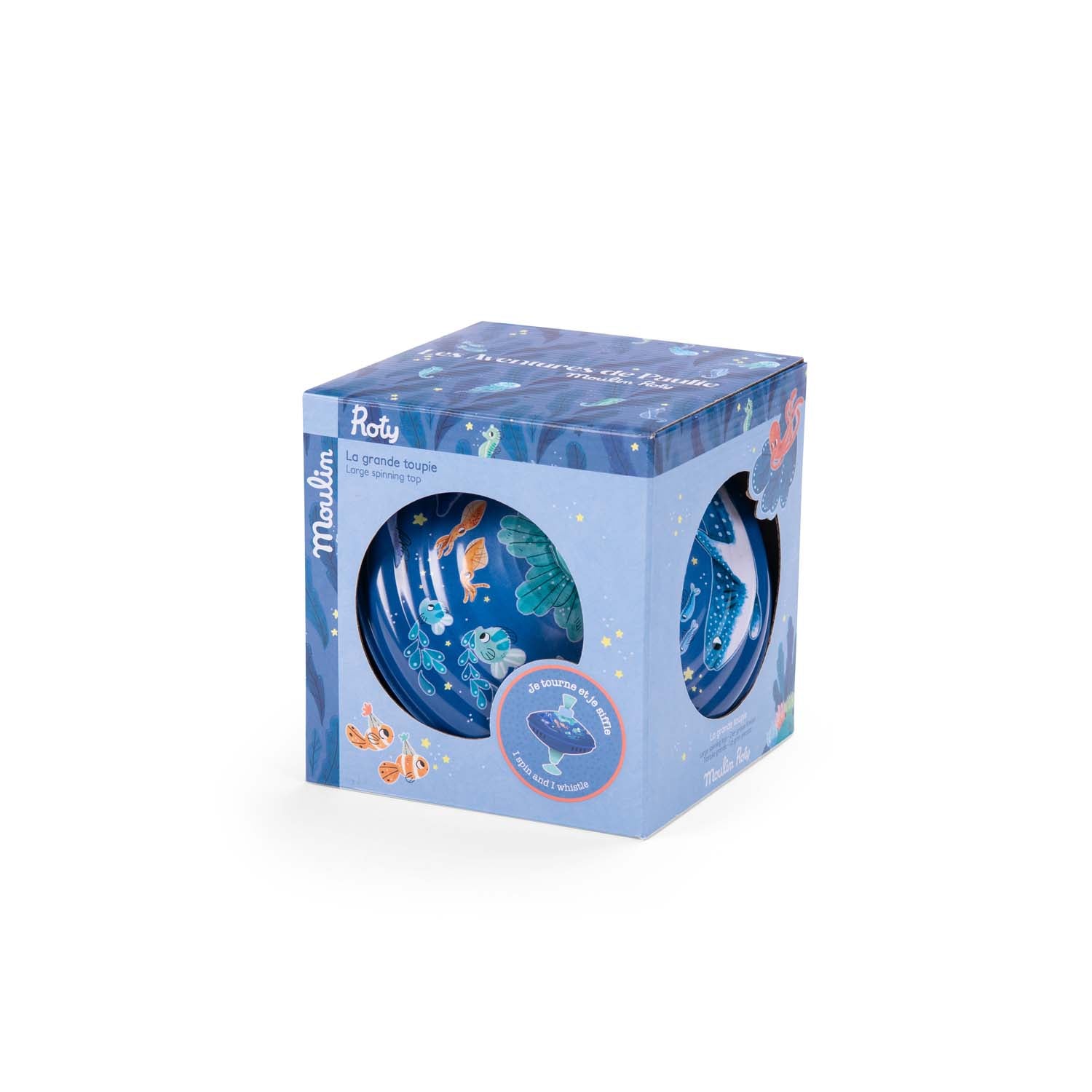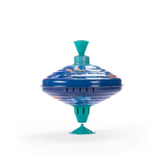 Large metal spinning top, illustrated with Paulie's friends exploring the seabed! Here they are, moving forward in step with the speeding top! A classic game for young and old alike. For ages 2 years +. Measures approximately 20cm in diameter and 18 cm in height.