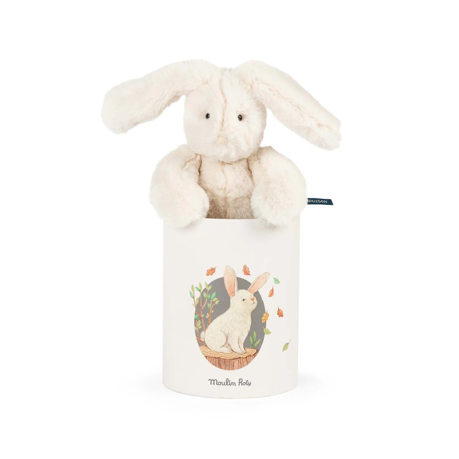 A tender rabbit, all soft and fluffy for extra-special cuddles! You can take it everywhere you go, thanks to its size, which is ideal for toddlers' arms. Louison is patiently waiting in a beautifully illustrated round box.