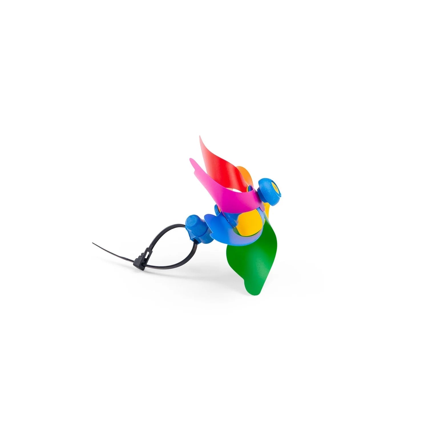 Windmill with attachment for pushchair, balance bike, bicycle etc. Easy to install and use, it will entertain children and adults alike as it spins merrily in the wind. Washable with a soft and damp cloth. Measures approximately 10 cm in height. For ages 18 months +.