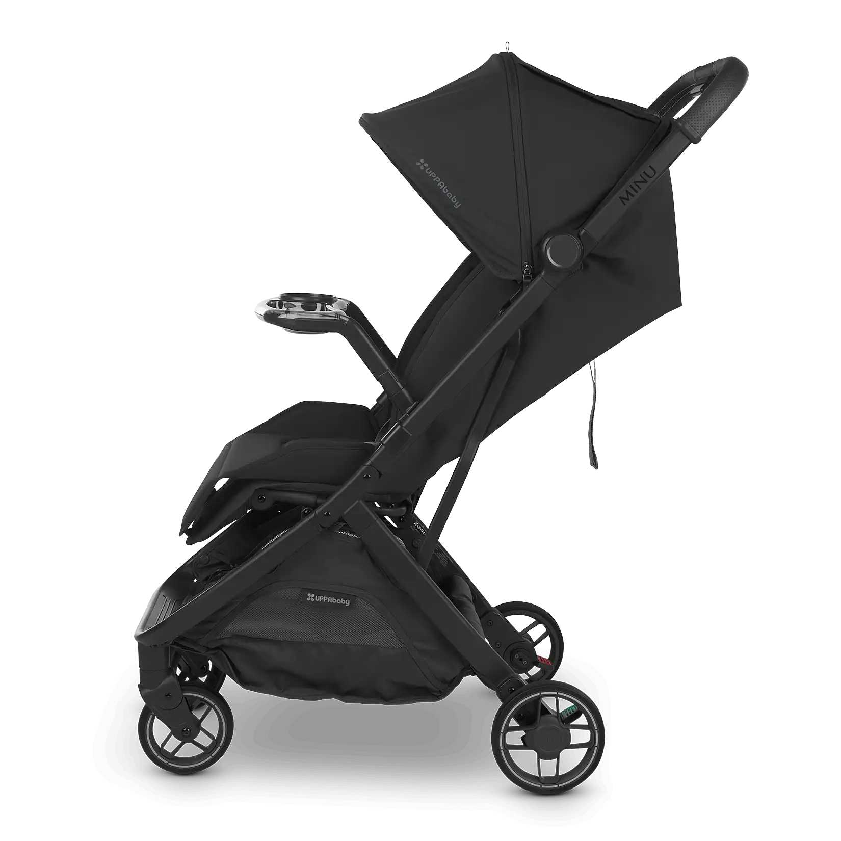Keep your toddler satisfied while strolling with the perfect snacking surface and drink holder that attaches to the Minu V3 stroller.