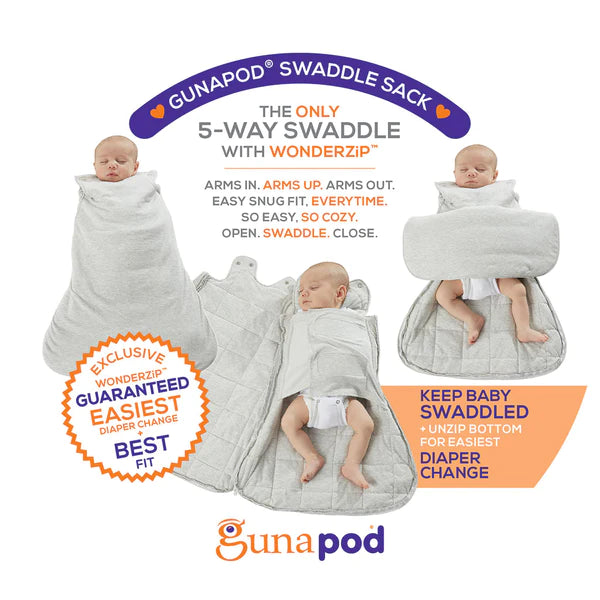 Better than sliced bread, our bamboo swaddle wrap for newborns through 3 months features gunamuna’s genius easy-change WONDERZiP® to keep baby swaddled during those midnight diaper changes. Wrap ‘em up arms in or out with an optional built-in belly band and a wider, more comfortable fit to fold legs in the natural frog position, then watch them sleep. And sleep. And sleep. The only thing cozier: the womb™.