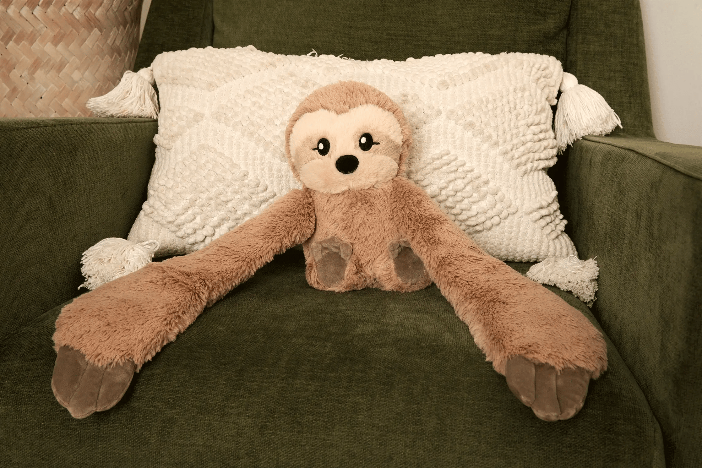 Hi! I’m Sawyer, the super chill and delightfully silly baby sloth Hugaround. I’m all about taking life slow, finding time for fun, and celebrating the beauty of lazy days. My hugs are soft, soothing, and perfect for relaxing after a big day of play.