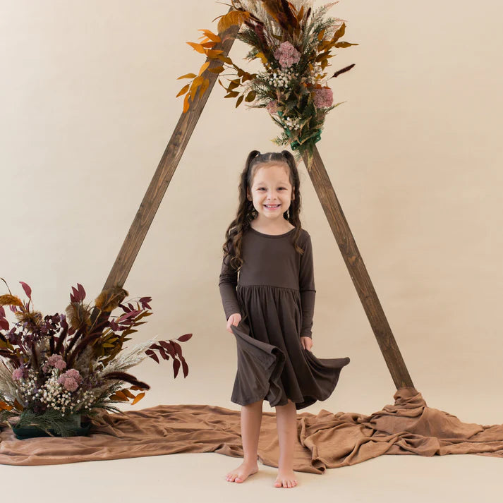 KYTE BABY L/S TWIRL DRESS - ESPRESSO