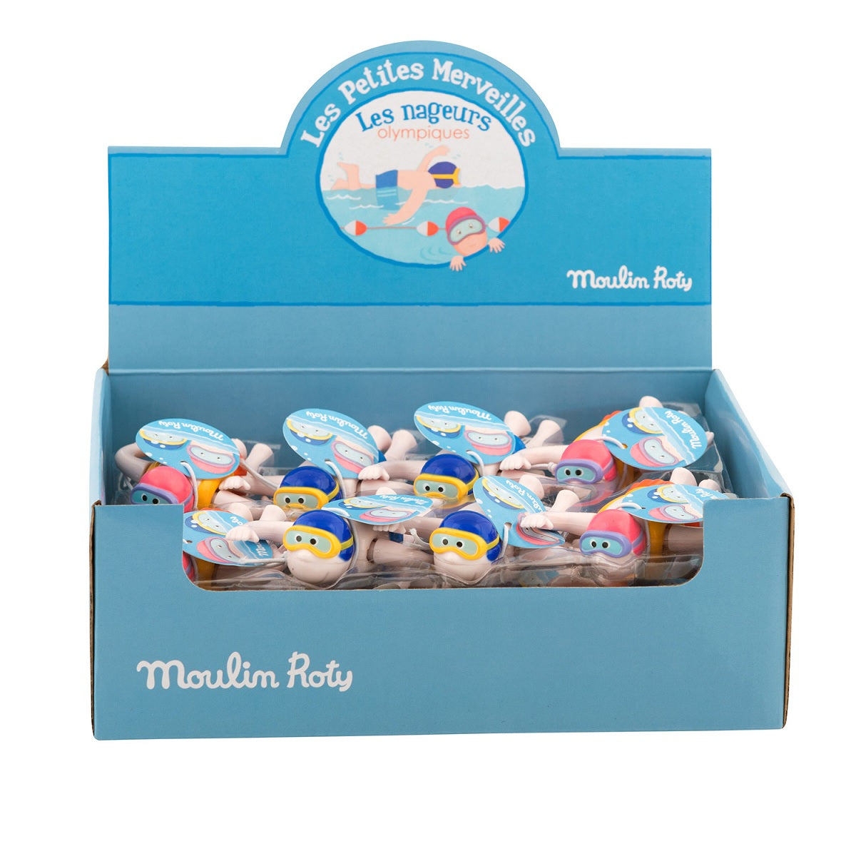 A selection of 16 plastic wind-up swimmers with swimsuits, goggles and bathing caps. Wind them up, place them in a washbasin, bath or a bowl of water and away they go! Magically transformed into Olympic swimmers! WARNING SMALL PARTS: Safety rated for ages 3+.