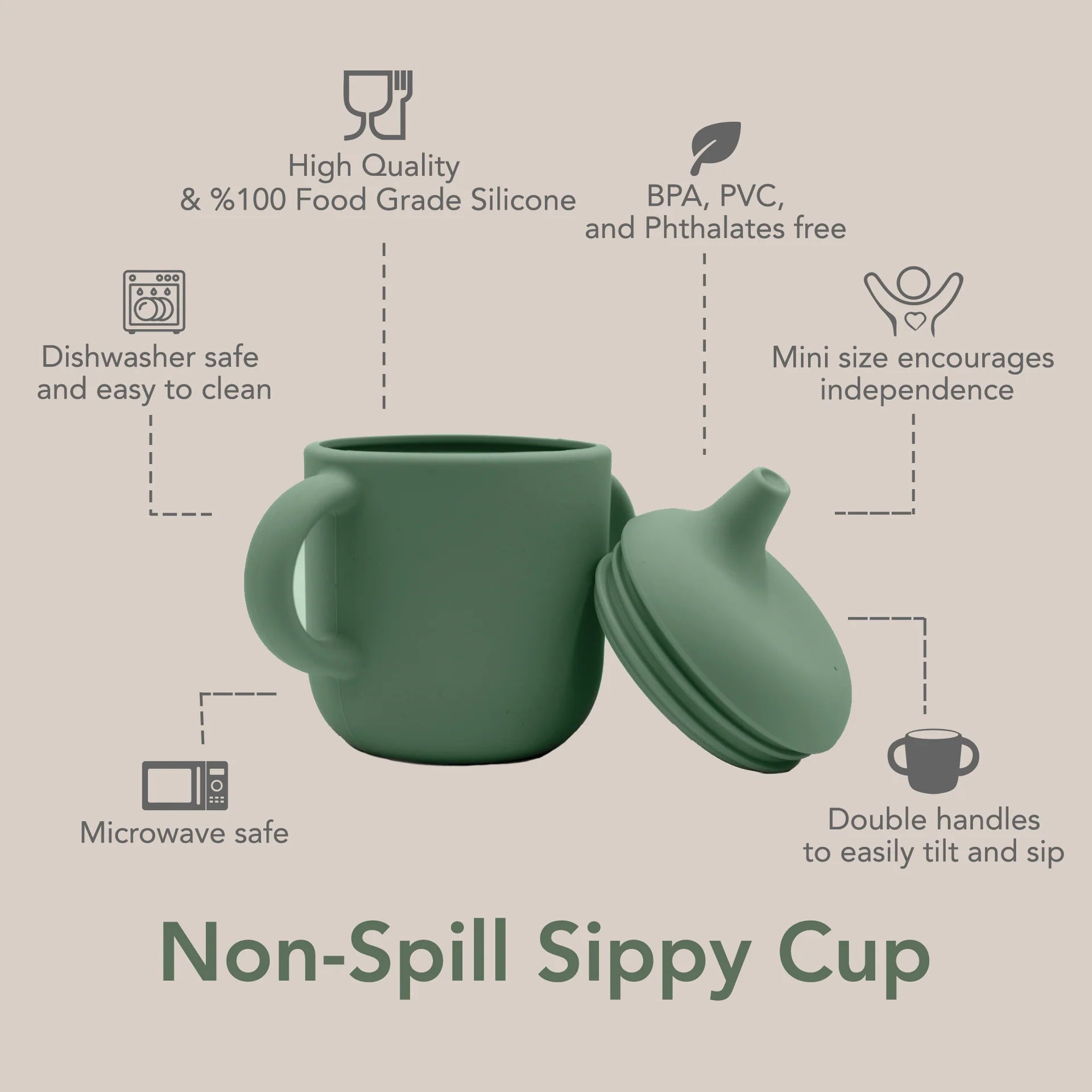 Is your little one moving from bottles to cups? noüka’s Non-Spill Sippy Cup helps develop fine motor skills and encourages independent eating. This training cup is soft to the touch with easy-grip handles that perfectly fit little hands. A soft, silicone spout is gentle on gums and teeth for comfort. Made from food-grade silicone that is microwave and dishwasher-safe, our sippy cup is easy to clean, durable, and long-lasting. The Non-Spill Sippy Cup is available in an array of calming, modern colors for your little one.