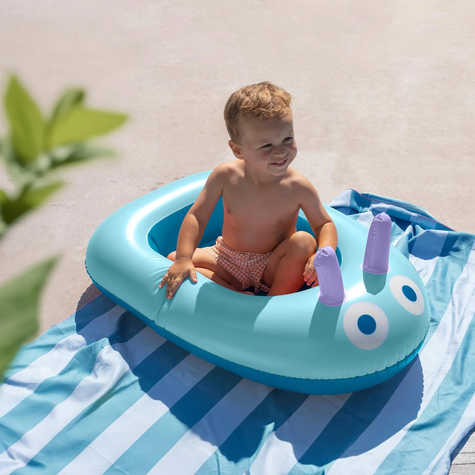 Hop aboard and sail around in the water in your own inflatable boat. Get ready for waves of fun!