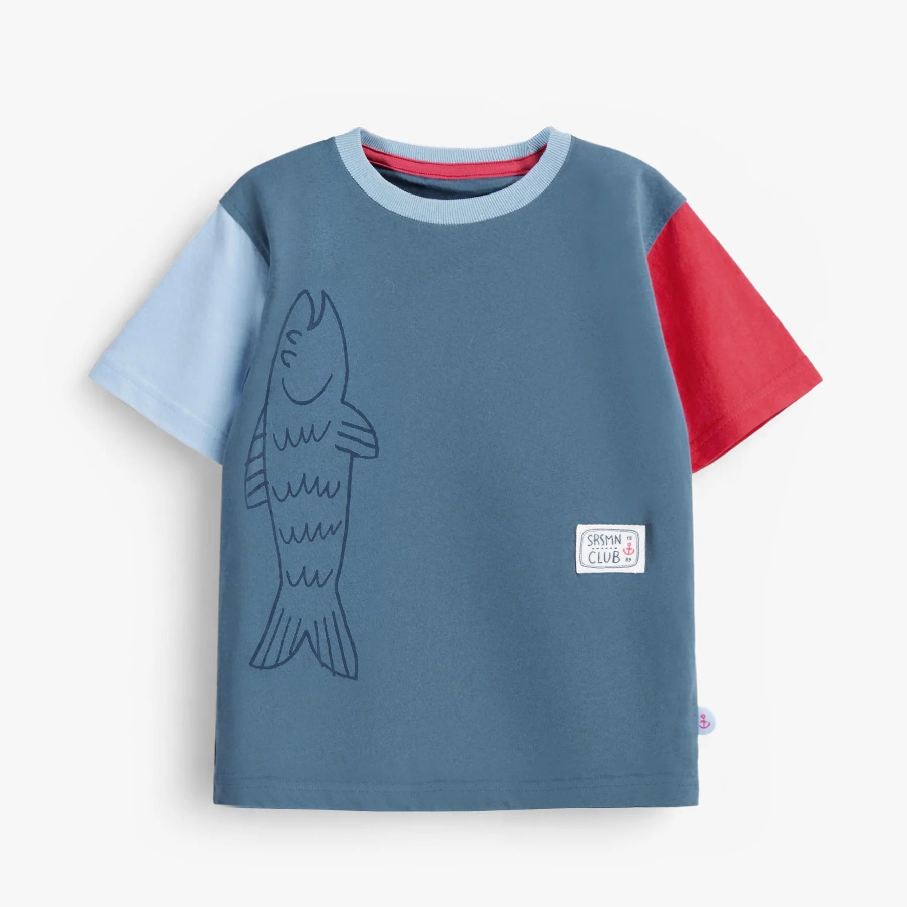 Navy blue T-shirt with fish illustration. Features contrast short sleeves and a round neckline. Made of cotton jersey in a regular fit for maximum comfort.Cotton jerseyRegular fitShort sleevesRound neckline